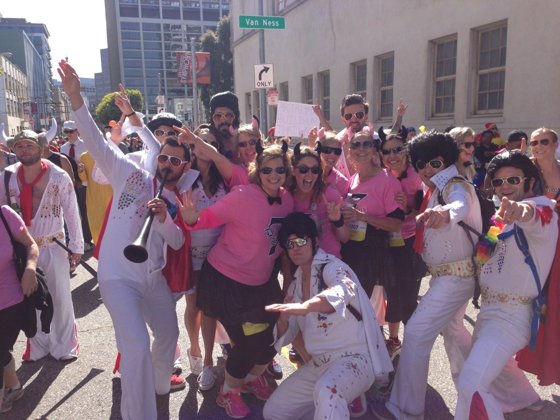 But I’m starting to understand that by holding on to some ideas so tightly, I may be missing out on some other good stuff along the way. Visually, holding on loosely also allows light to show through your fingers. It also makes me feel like what I’m holding might slip through my fingers but I guess that’s the point. The tighter you hold it, the more power you give it. Conversely, the more loosely you hold something you want, the easier it is to see other options and change course. Of course, holding something loosely also allow for you to be surprised by the outcome. (See picture above: During the Bay to Breakers race, I asked a guy dressed as Elvis to take a picture with me. He called for back-up Elvises and the rest is history. So much better!)